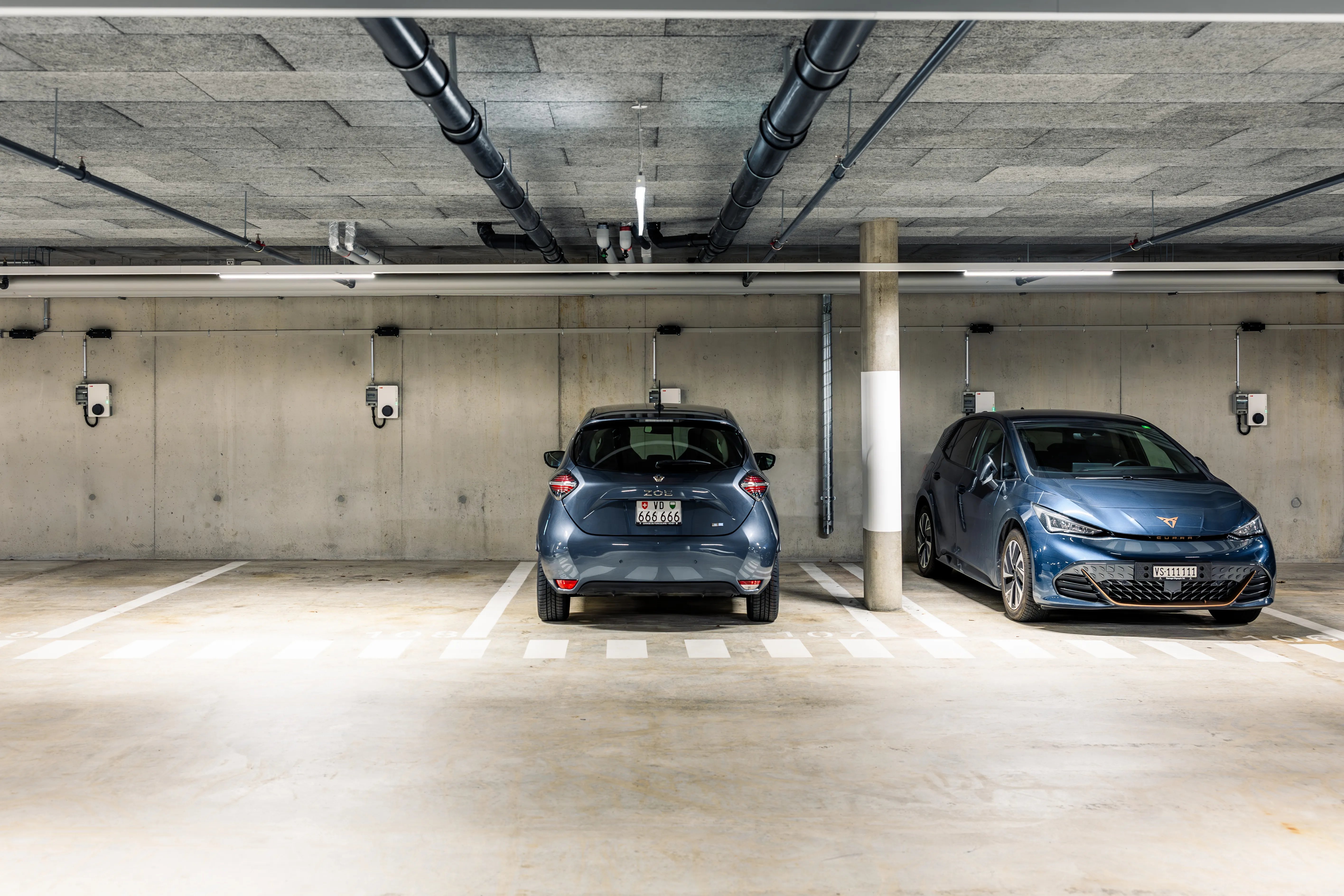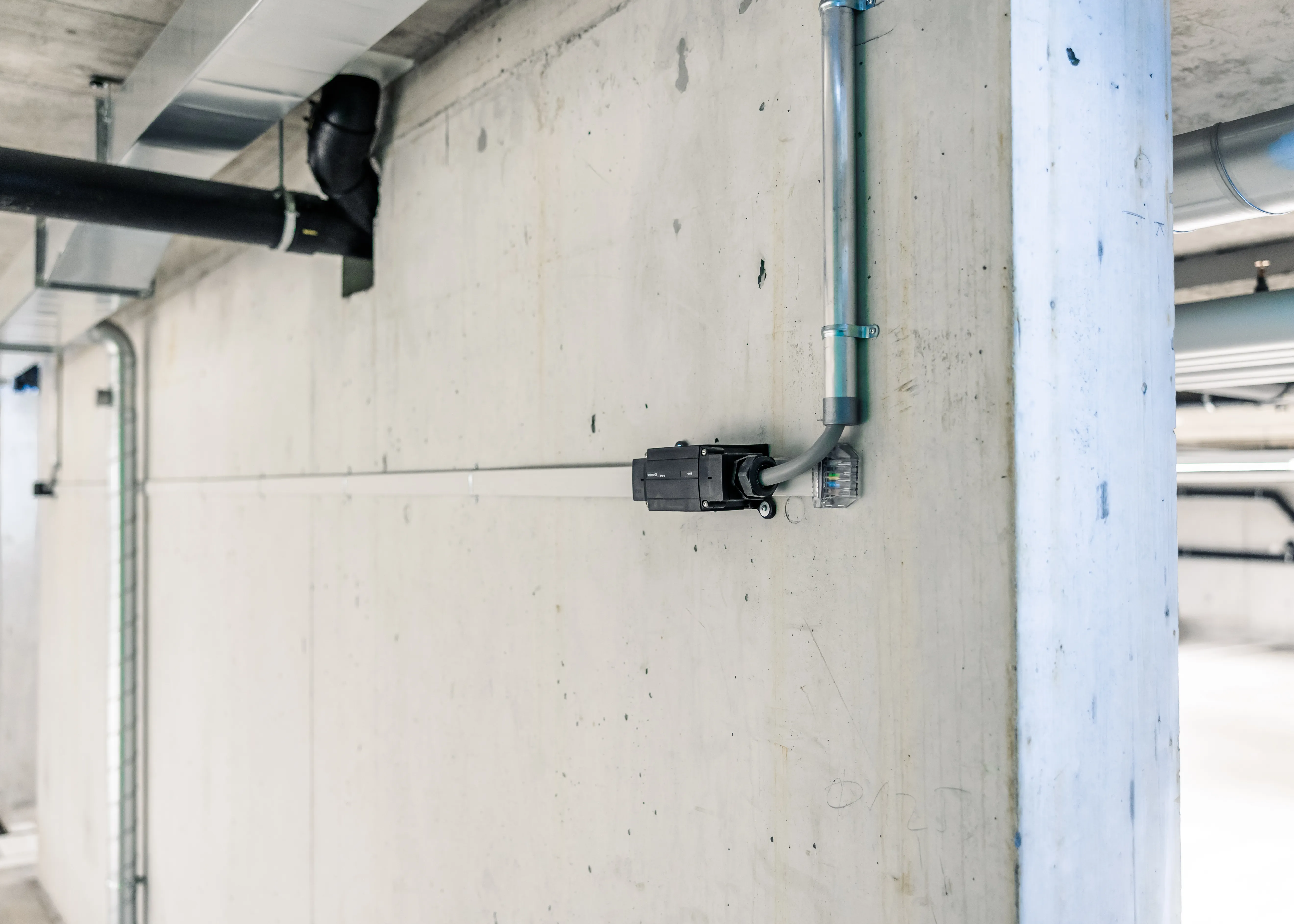 Il est recommandé d'installer un câble plat pour amener l'électricité à chaque place de parking. Cette solution facilite l'installation progressive de bornes de recharge, au fur et à mesure que les habitants souhaitent s'équiper. Cette approche correspond au niveau C1 de la norme SIA 2060.