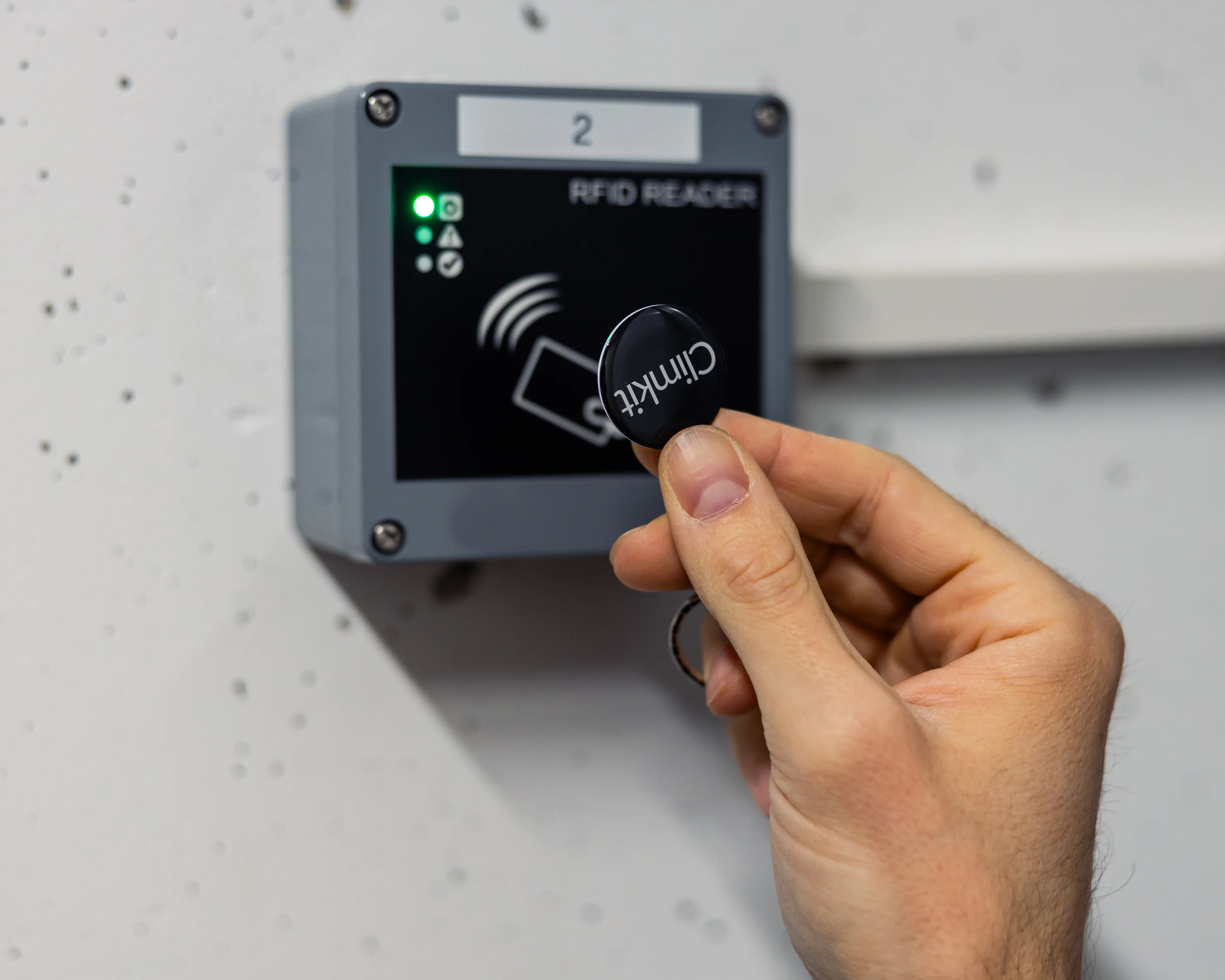 Un lecteur RFID connecté à la Gateway identifie les utilisateurs et enclenche l’alimentation électrique des machines à laver, des sèche-linge ou des secomats.